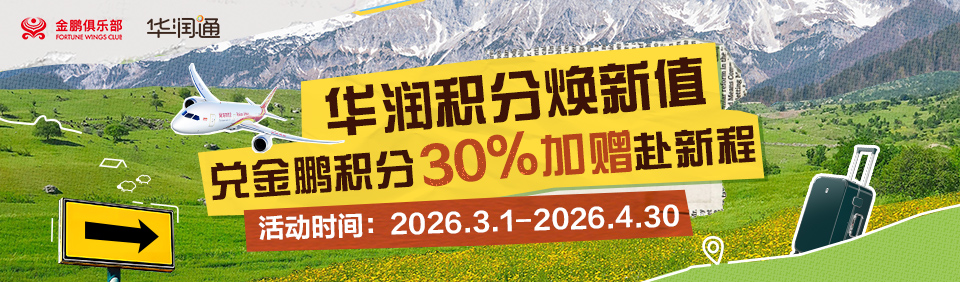 1.活动期间华润通积分兑换金鹏积分以实际发起日期为准,成功入账后可享受加赠。发起日期区间为:2026年3月1日-2026年4月30日。
